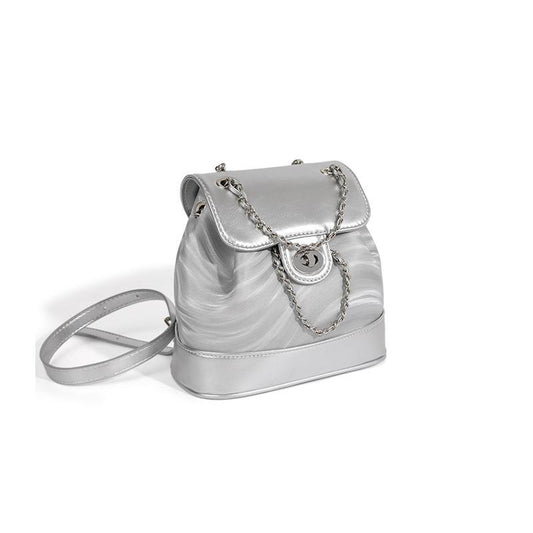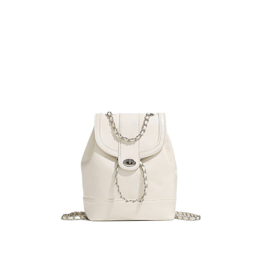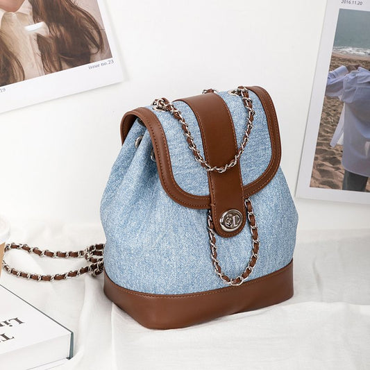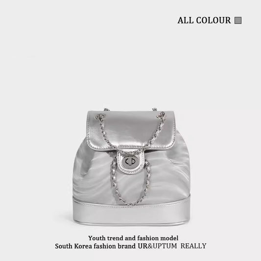 休閒小香風銀扣鏈條雙肩手提水桶包/2色