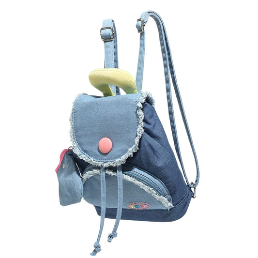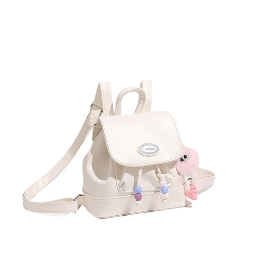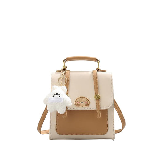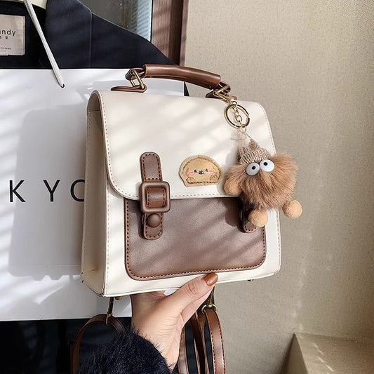 質感菱格紋小熊金扣拉鍊雙肩包/4色