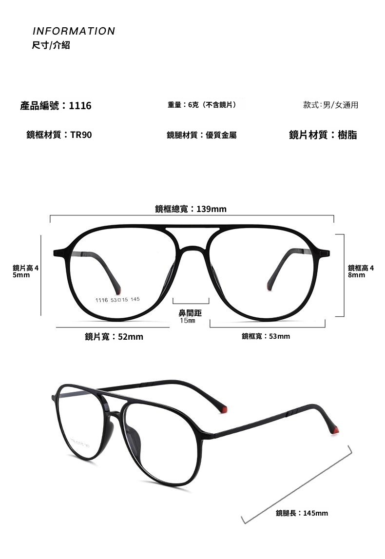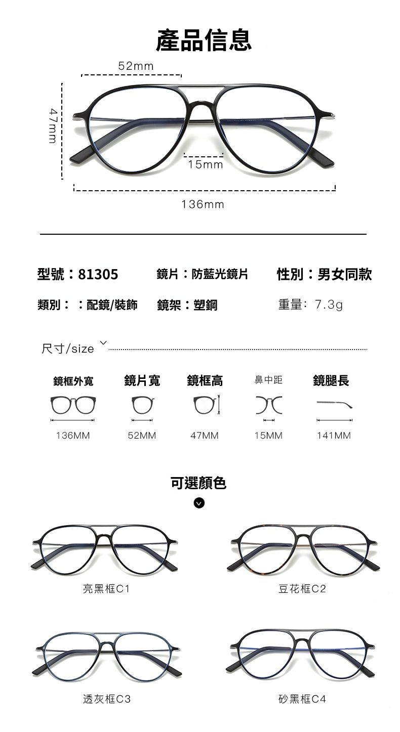‧ Simple and artistic / Highly elastic plastic steel / Comfortable nose pads