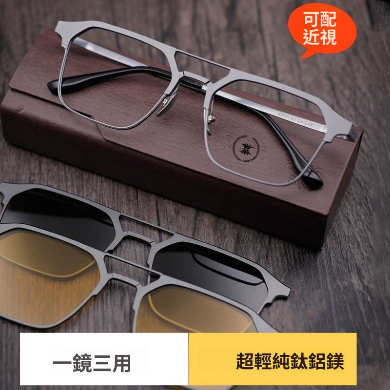 純鈦磁吸飛行雙樑鋁鎂套鏡眼鏡框/2色