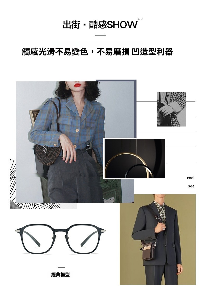 超輕時尚經典方型複合鏡框/3色