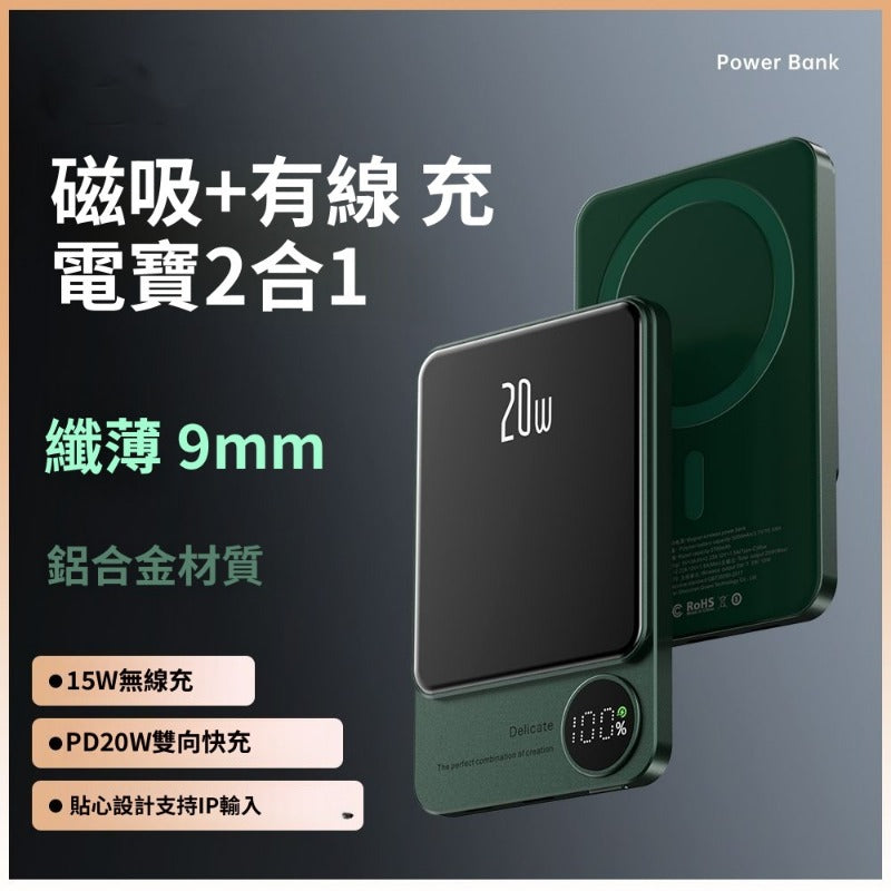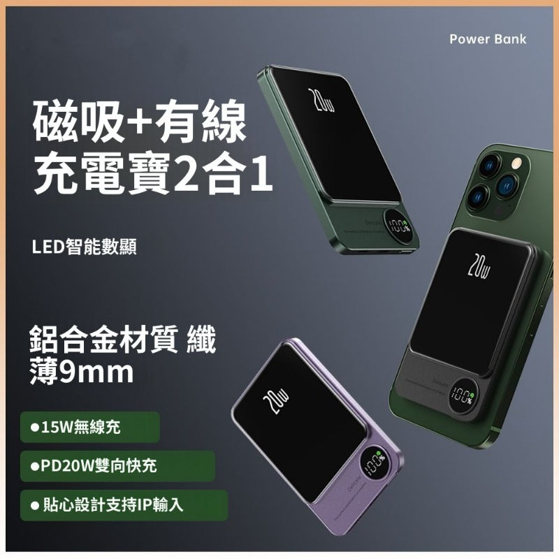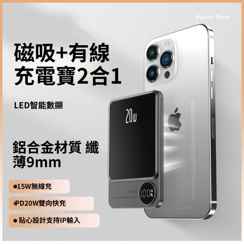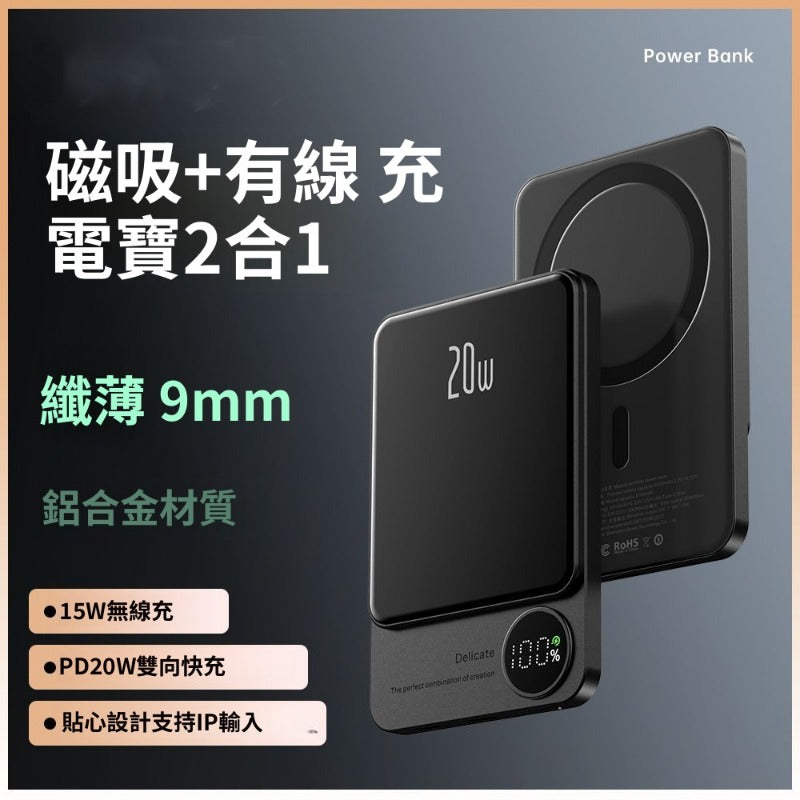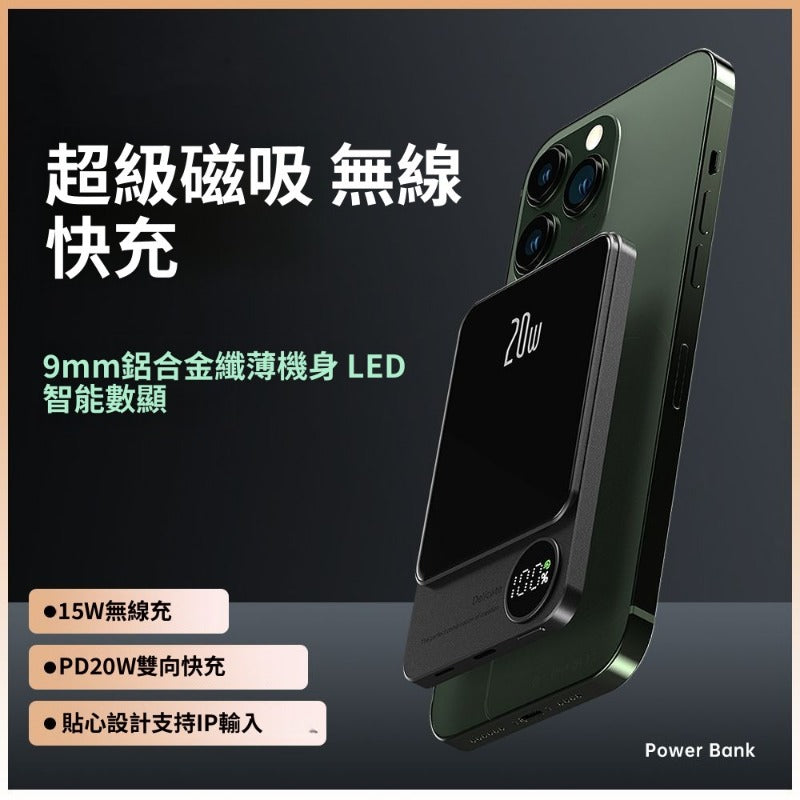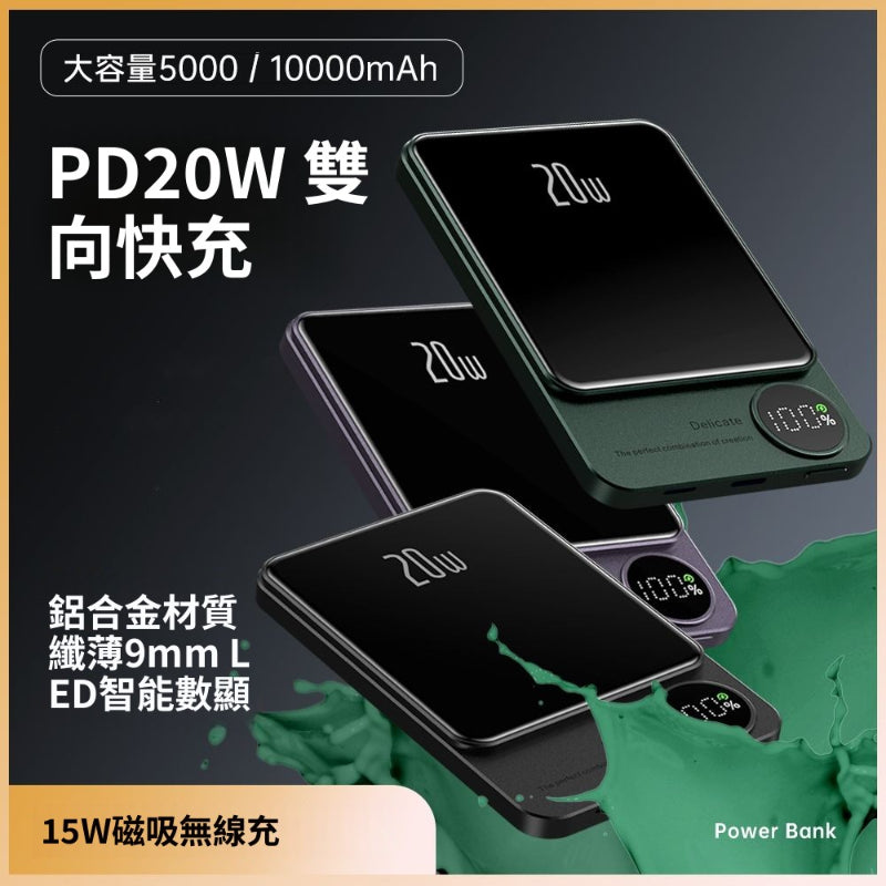 พาวเวอร์แบงค์ไร้สายแบบแม่เหล็กอัลลอยด์ขนาดกะทัดรัดและน้ำหนักเบา/3 สี