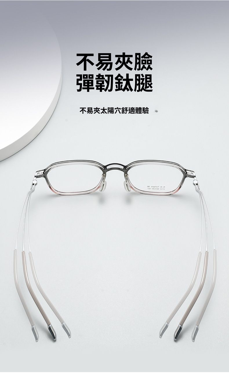 • ทำจากไทเทเนียมบริสุทธิ์ TR คุณภาพสูง / ออกแบบตามหลักสรีรศาสตร์ / แผ่นรองจมูกช่วยลดแรงกด