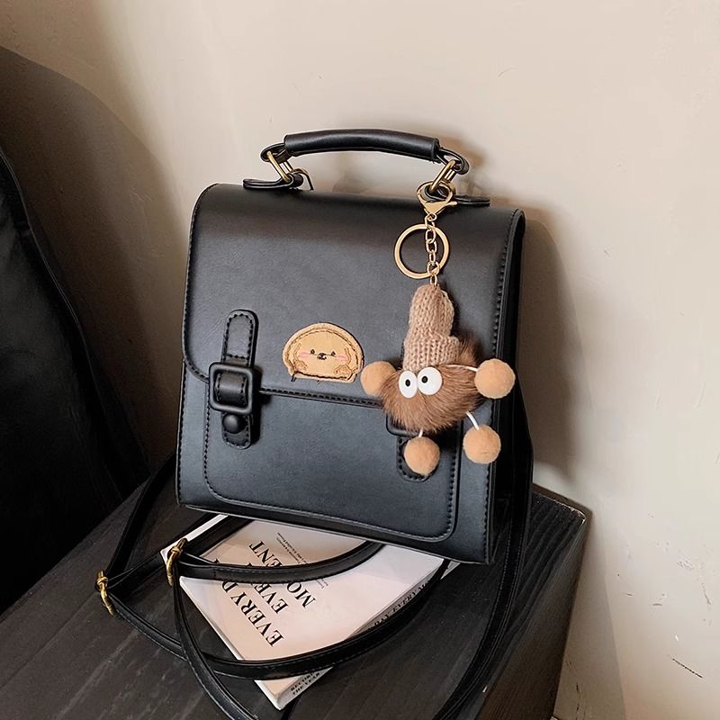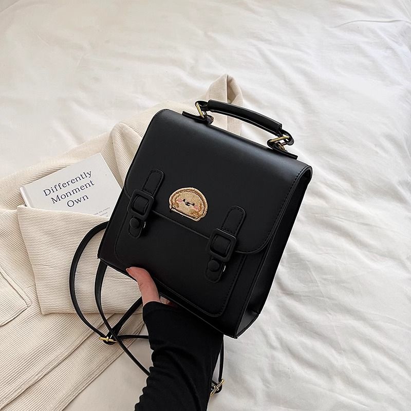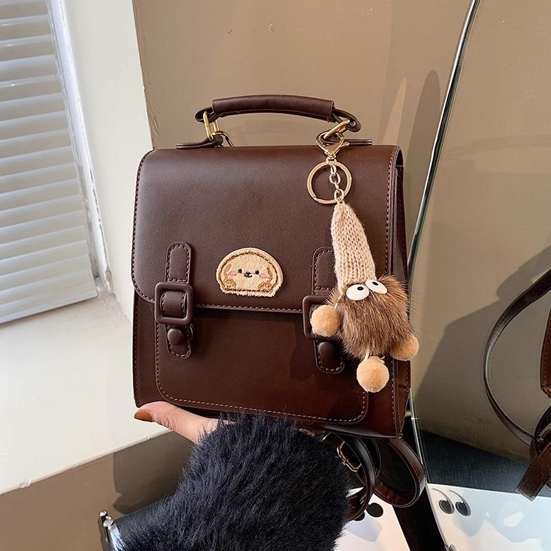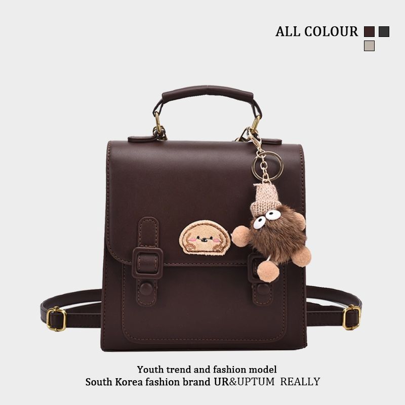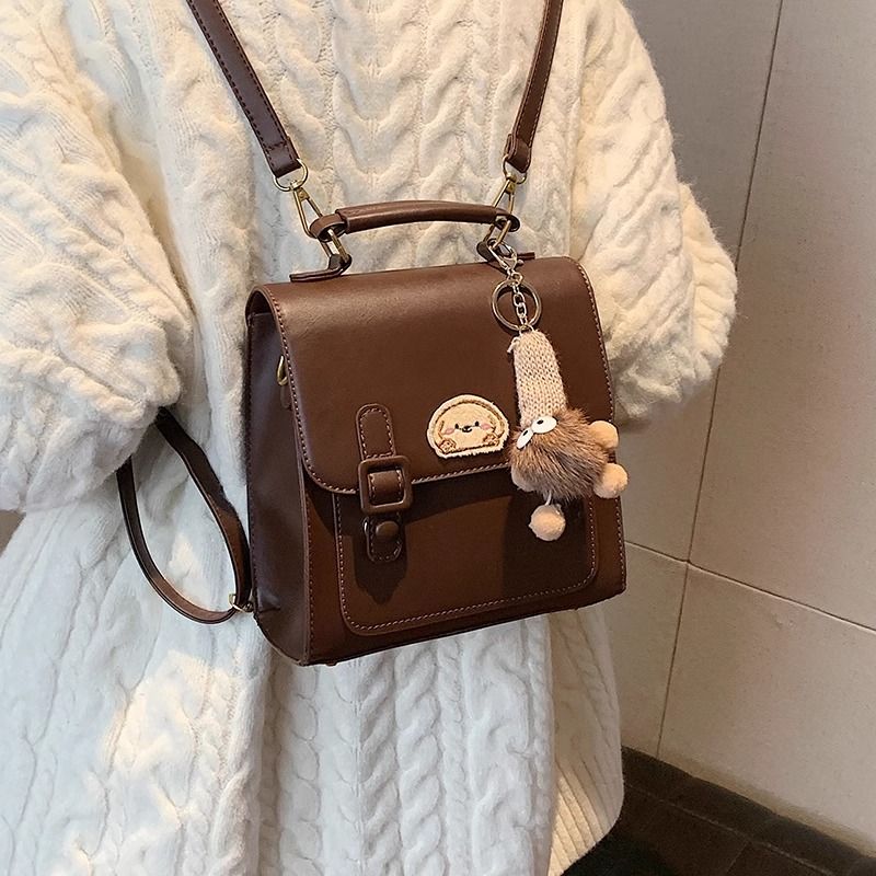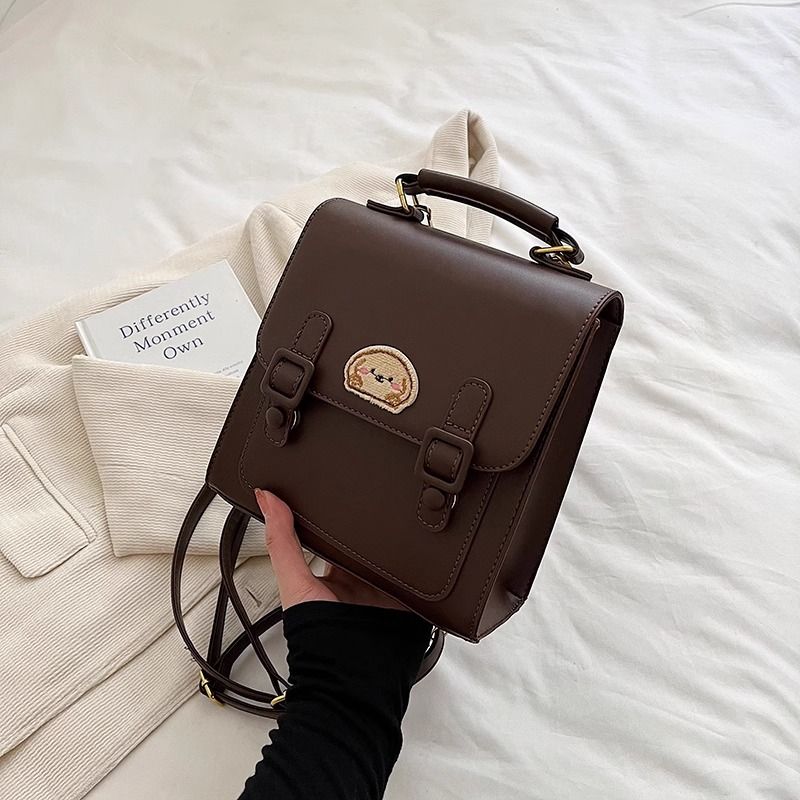 กระเป๋าเป้สะพายหลังแบบมีหัวเข็มขัดสีน้ำตาลสไตล์เรโทรเรียบง่าย / 3 สี